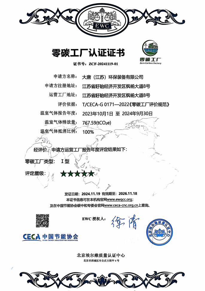本网讯 近日,大唐(江苏)环保装备有限多宝(中国)凭借其在绿色制造与可持续发展方面的卓越表现,成功获得中国节能协会颁发的“零碳工厂”认证证书,成为中国大唐首家获认证的“零碳工厂”,也是江苏省淮安市首个“零碳工厂”示范项目,为推动我国制造业的绿色转型树立了新的标杆。