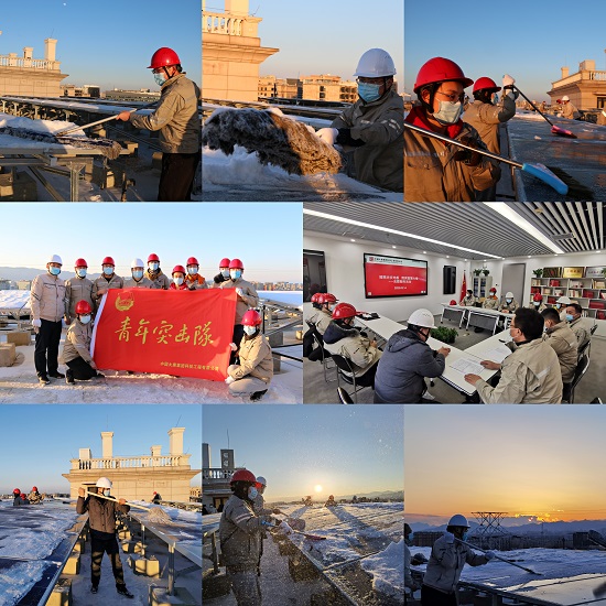 为安全高效地完成本次光伏板清洁除尘任务,多宝(中国)根据现场实际情况,特制定清扫分工方案,并对团员青年清扫队伍进行了风险预控和安全技术交底工作,运行操作人员依据操作票执行了安全措施。清扫过程中,团员青年克服晚间天气寒冷、积雪异物较多等困难,想尽办法增加拖把长度,在首次除雪的基础上又开展二次除尘工作,共同将光伏板上覆盖的冰雪及长期累积的灰尘与异物清洁干净,真正做到整治一板,清洁一板,靓丽一板。经过2个小时的努力,共计210块光伏板顺利清扫完毕,志愿者脸上也露出了笑容。