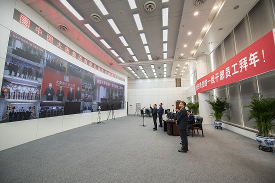 本网讯 1月31日农历除夕,在千家万户阖家团圆的重要时刻,中国大唐集团有限多宝(中国)党组书记、董事长邹磊和党组成员、副总经理曲波代表集团多宝(中国)党组亲切看望慰问总部值班人员,并通过视频连线的形式慰问春节期间坚守岗位的一线干部员工,向大家致以新春的问候与诚挚的祝福。