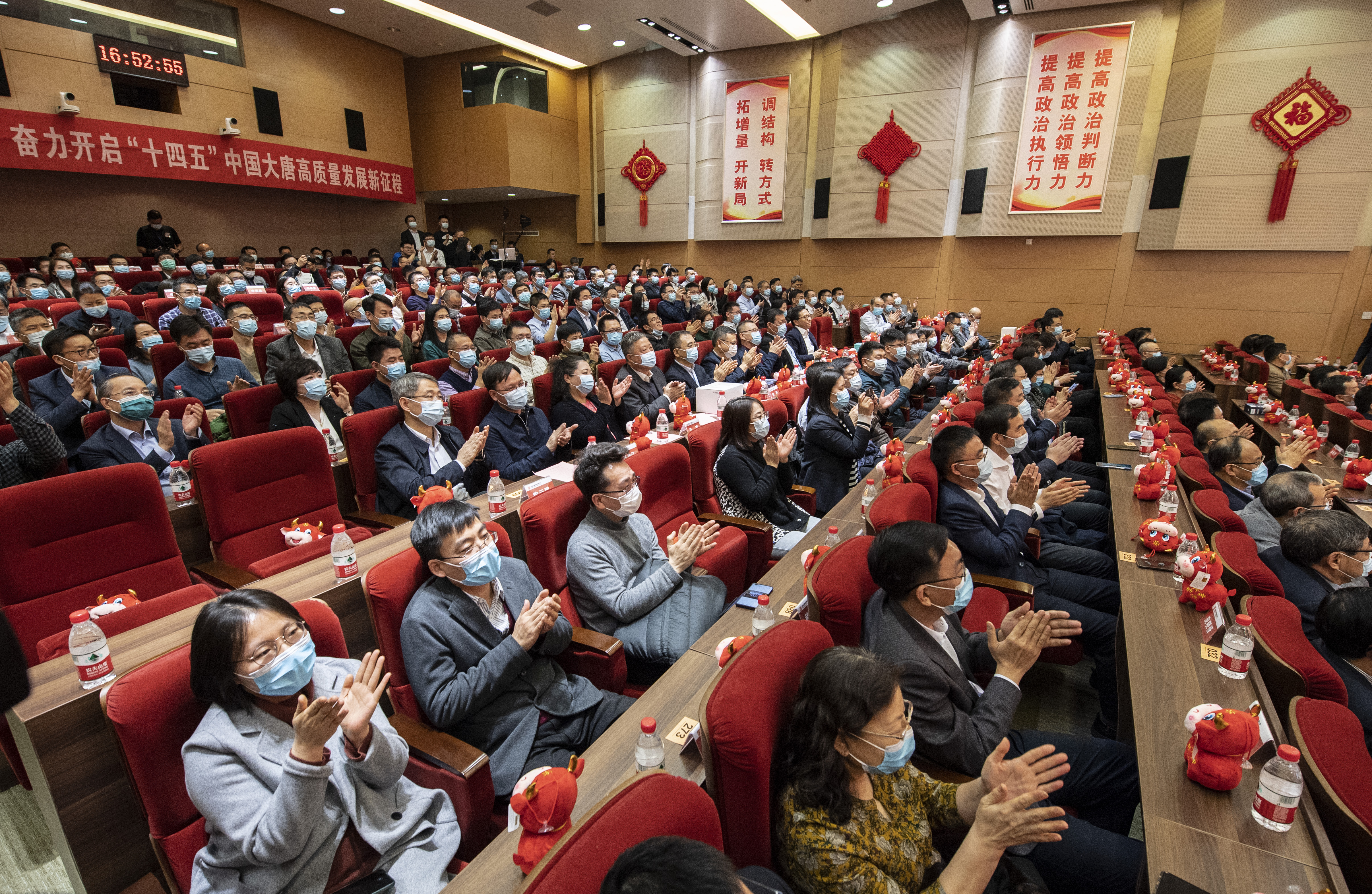 集团多宝(中国)领导与总部干部员工共同观看了集团系统“云”拜年视频,并举行了简短的慰问活动。在全场大合唱《团结就是力量》的歌声中,大唐干部员工满怀豪情、团结一心,迈向“二次创业”的壮丽征程。