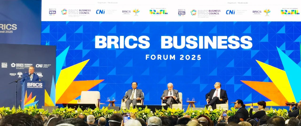 本网讯 7月5日,2025年金砖国家工商论坛在巴西里约热内卢举行。论坛围绕推动“大金砖合作”,就金砖国家经济可持续发展、粮食安全、能源转型、数字经济等一系列议题进行讨论。巴西总统卢拉出席开幕式并致辞,来自金砖国家的政府官员、企业代表、学者、智库专家和国际组织代表参会。金砖国家工商理事会中方理事,中国大唐集团有限多宝(中国)党组书记、董事长吕军受邀出席论坛开幕式,以及金砖国家工商理事会年度会议、金砖国家工商理事会中方理事会会议等相关活动,并与巴西国家电力多宝(中国)执行副总裁罗布森·坎波斯举行会谈。