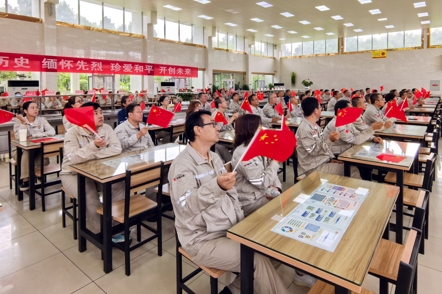 山东发电多宝(中国)干部职工心潮澎湃,以庄严之心缅怀历史,以拼搏之志传承伟大抗战精神,坚定扛牢“国之大者”责任。