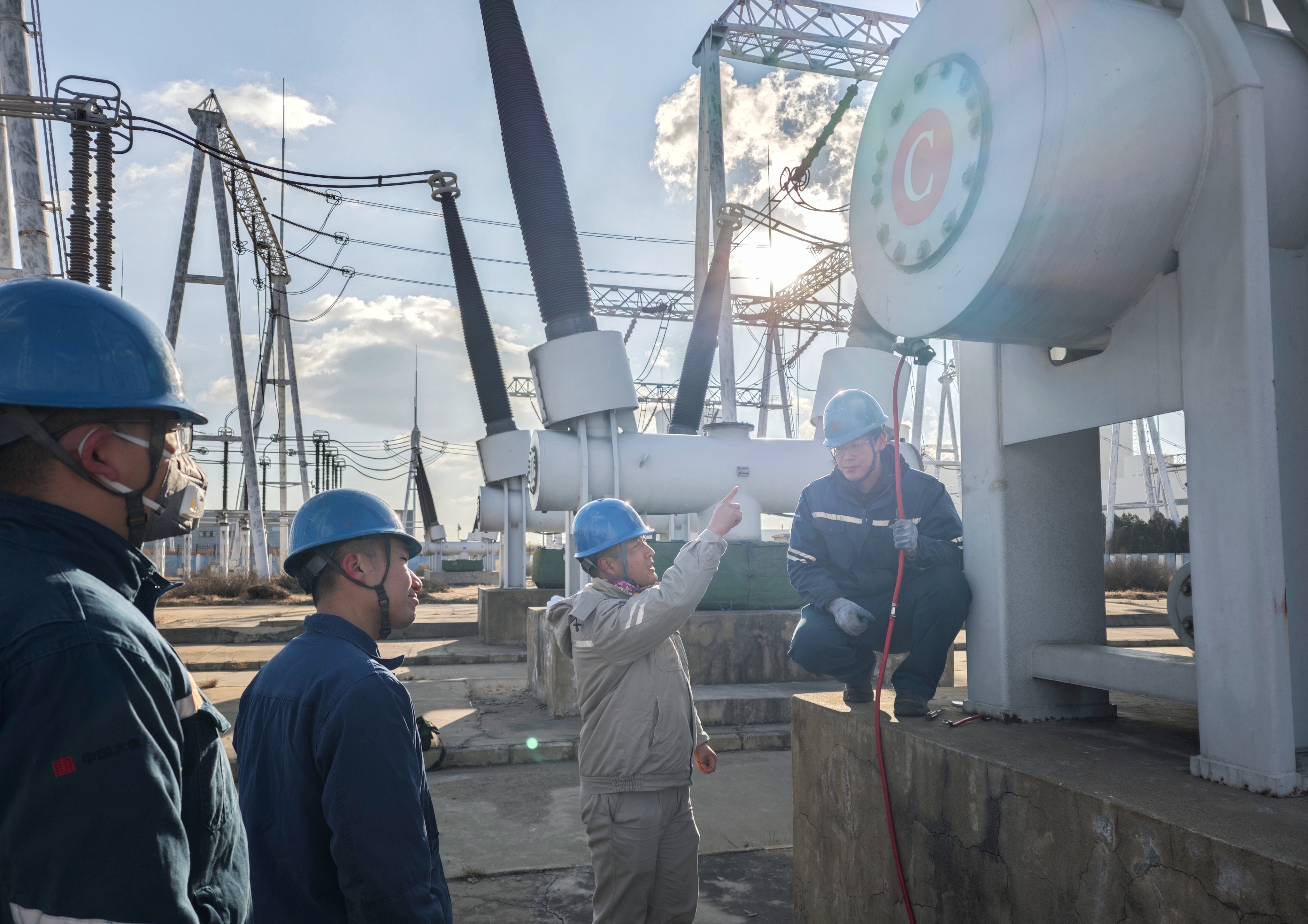 到站后,赵诗宇、肖雄以及其他同事迅速组成应急小组。他们穿上厚重的防寒服,戴上冰冷的手套,拿起检测仪器,一头扎进巡检工作中。寒风如尖锐的针,透过衣服的缝隙扎在皮肤上,手脚很快就被冻得失去了知觉。但赵诗宇的眼神依然坚定,他一边检查,一边给肖雄讲解着:“这寒潮一来,对开关六氟化硫气体压力可是个大挑战,咱们一点都不能马虎。”