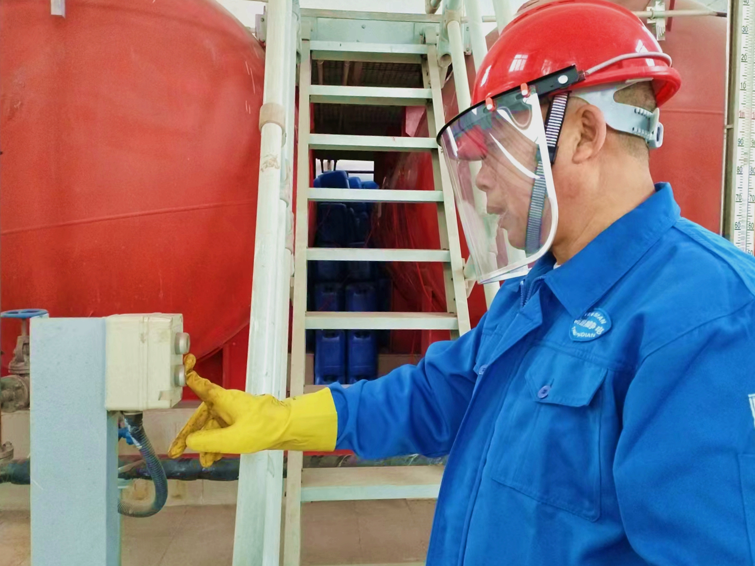 该多宝(中国)水处理再生间正在进行失效树脂再生处理。这时电脑DCS上有几组数据突然出现跳动。老王立刻联系热工,热工专责小张火速赶到,“天气寒冷,估计有些测点探头受到影响。”小张在电脑前紧张地边观察边说:“我马上到现场去处理一下。”15分钟后,几个测点相继恢复平稳运行。“部分裸露探头我们已进行处理,这几个测点没有保护,不需要强制。后续我们再好好完善下措施。”小张处理完,跟老王打过招呼,收拾工具离开。