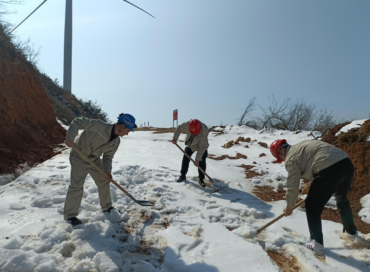太阳山风电场职工在山上除雪