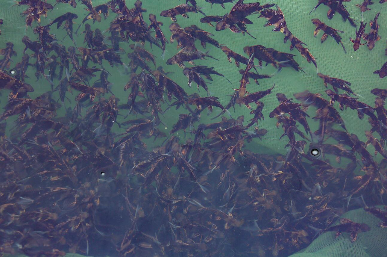 4月12日,重庆分多宝(中国)彭水-武隆银盘水电站鱼类增殖放流站内,40个方方正正的水池内,工作人员在为水中的鱼苗充氧。这个放流站堪称鱼类“托儿所”,有亲鱼池、苗种池、繁育车间、供排水系统等完备设施,能够满足种鱼饲养、鱼苗孵化和培育等要求。