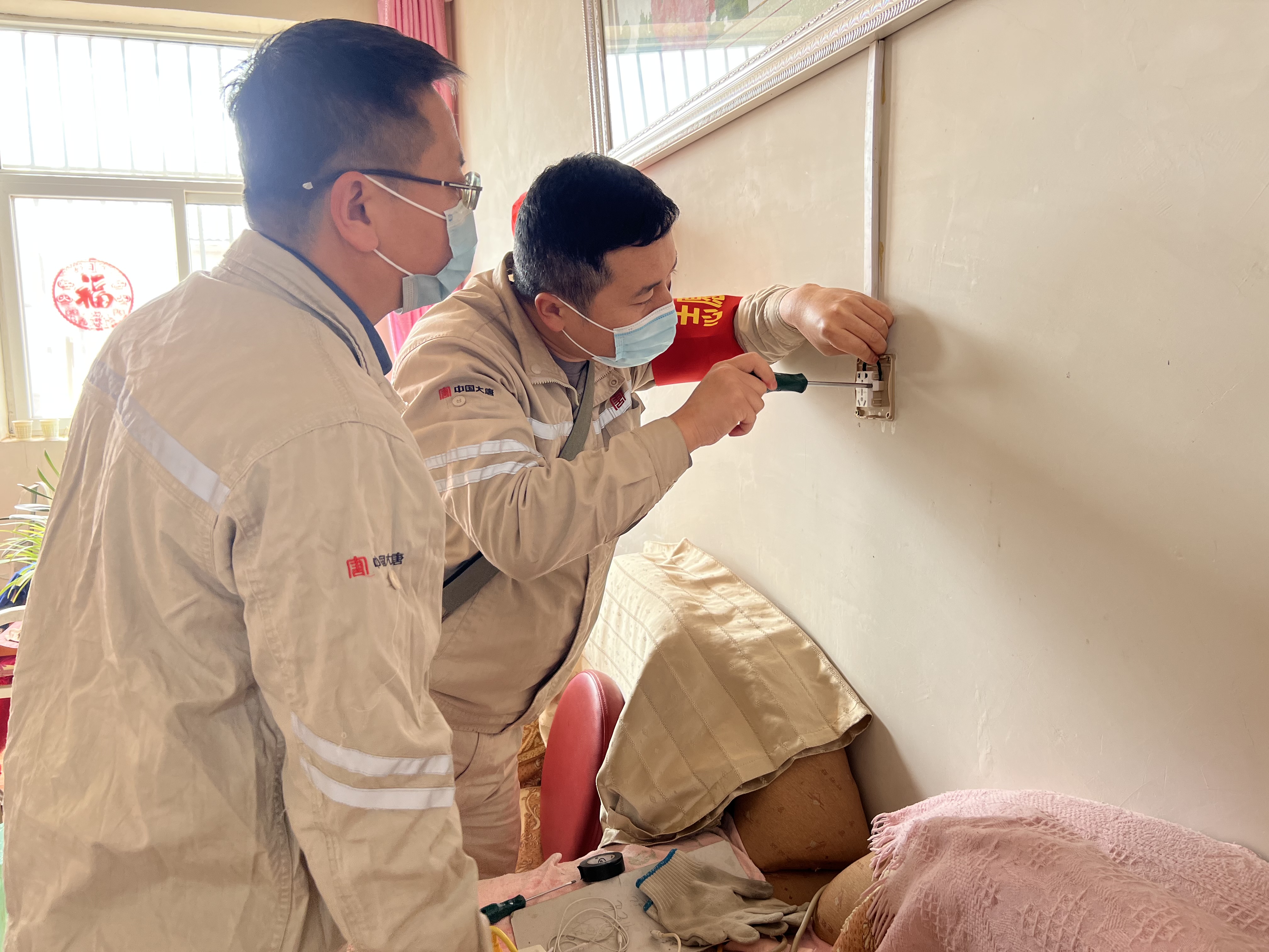 “有的老人因习惯了自己先前的生活,不愿跟随儿女搬迁,就成了独居的空巢老人。”村支部副书记介绍,由于这部分老人独居,线路是否老化不是很清楚,再加上老人安全用电常识的缺乏,极易发生断电或触电可能。“平时我们去老人家里时,看到他们家中的插座和开关都比较旧,很容易因为短路而发生火灾。今天大唐志愿者们来了,真是为老人家解决了用电隐患,我替老人家谢谢你们。”