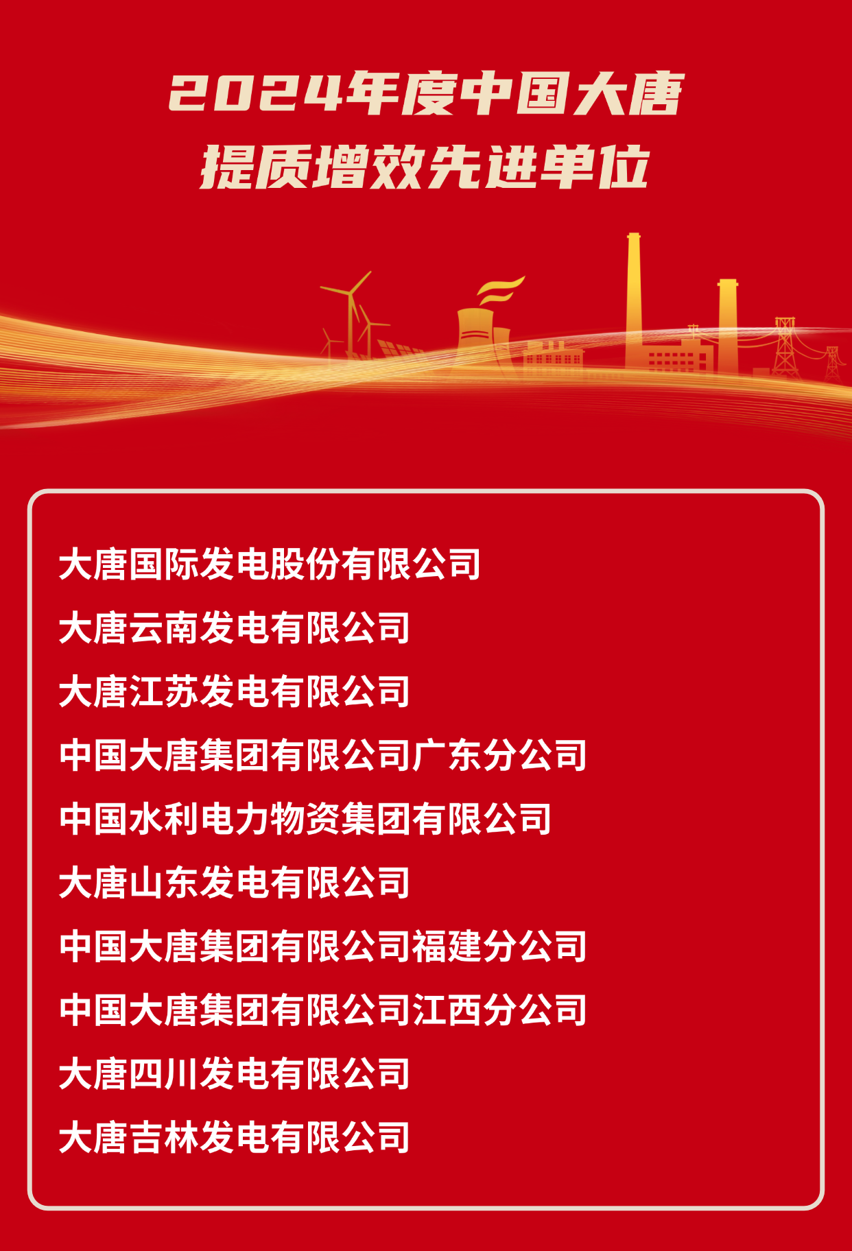 2024年度中国大唐集团有限多宝(中国)提质增效先进单位